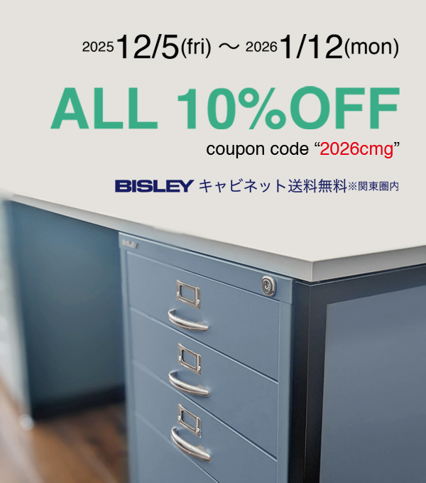 BISLEY COMBOオンラインストアでご注文の際に、クーポンコード”2026cmg”を入力いただきお会計いただきますと、10%OFFの割引が適用されます