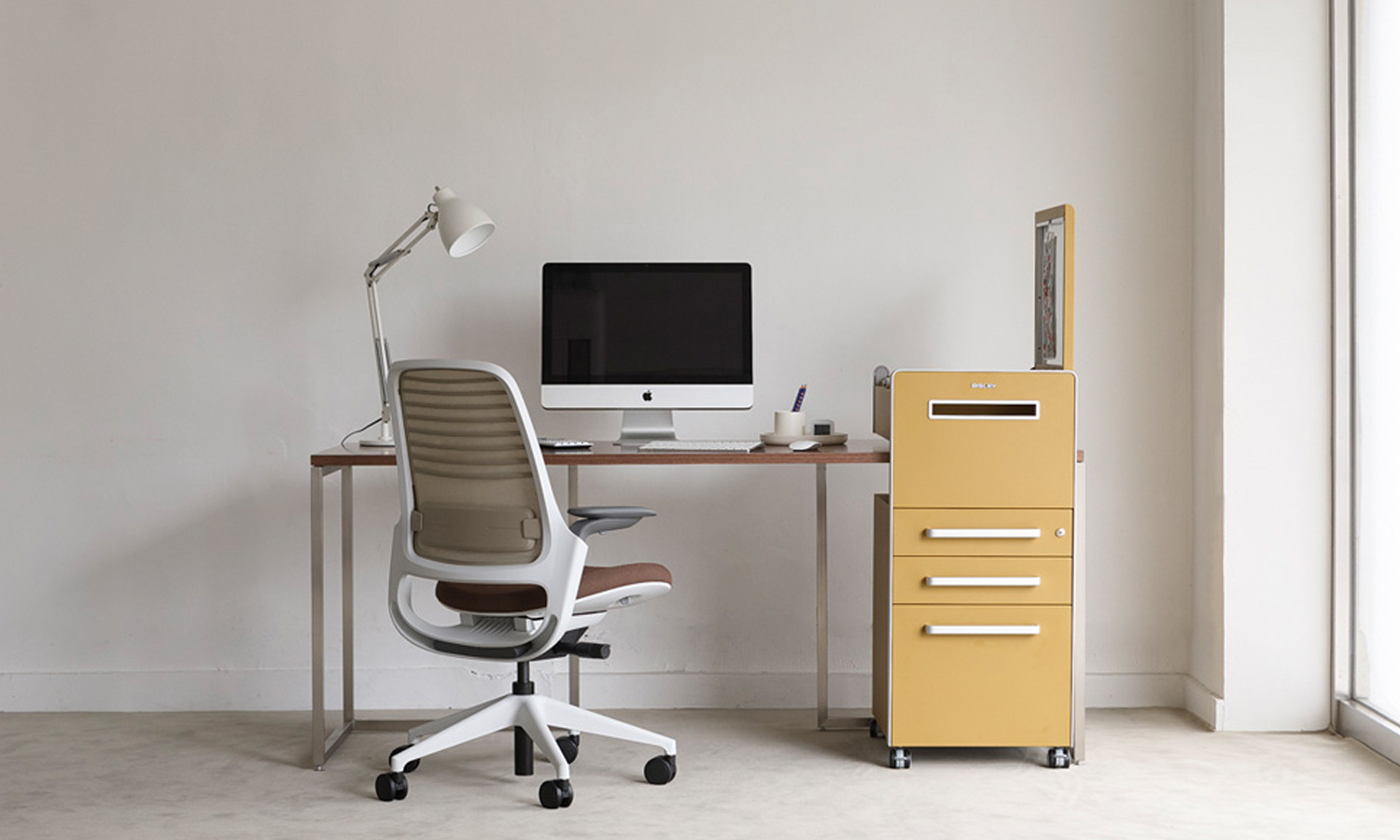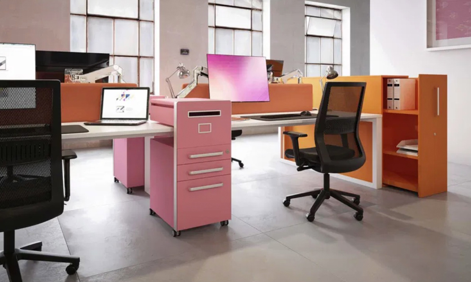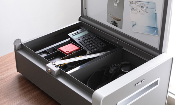 オフィスのフリーアドレスに対応した移動型キャビネット。お好きな場所の天板高さH645~750mmのデスク・テーブルに差し込んで使用できます。トップパネルの裏側はホワイトボードになっていますので、写真やメモをマグネットで貼付けることが出来ます。