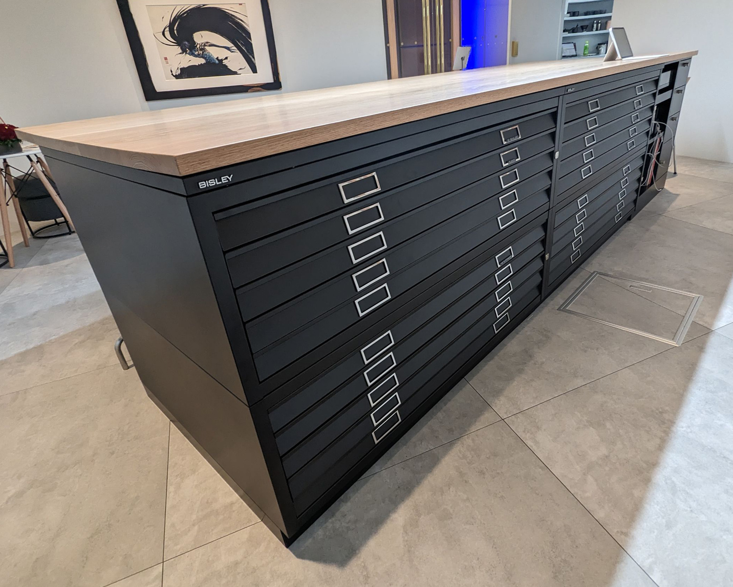 しっかりした構造で精度が高いマップケースです。他に例がないカラフルなカラーバリーションとA0紙、A1紙用の2種類のご用意を致しておりますので収納場所や、収納方法にお困りの大きなサイズのポスターや図面、デザイン画などを折り曲げずに収納できます。