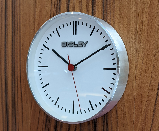 大人気のBISLEY壁掛け時計ですが、文字盤に数字表記のないクラッシックなデザインで、新色”アルミ”を追加してご用意いたしました