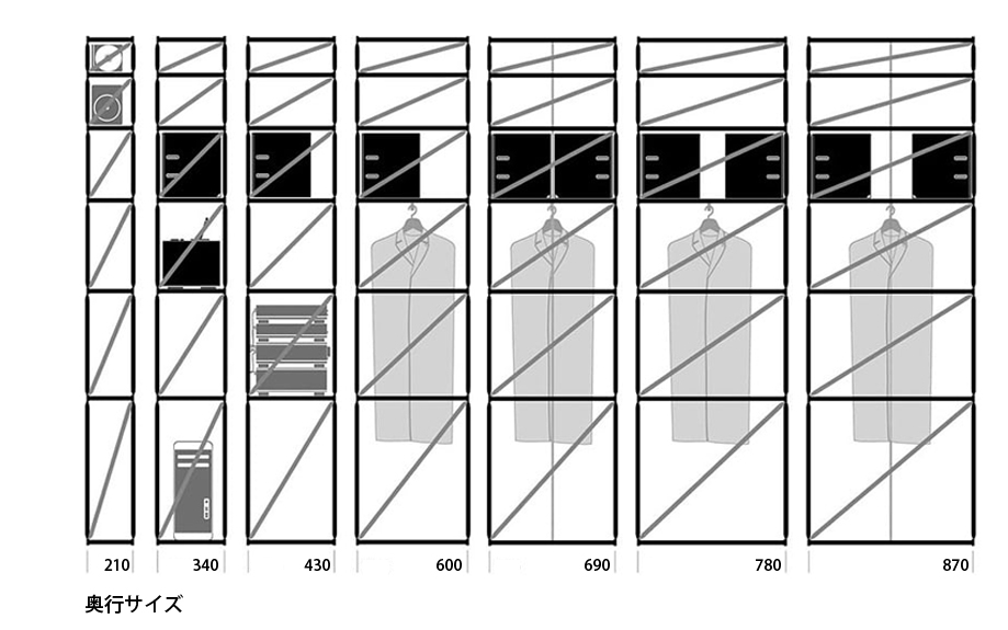 奥行(オク)サイズ(mm) - 210,340,430,600,690,780,870(mm)